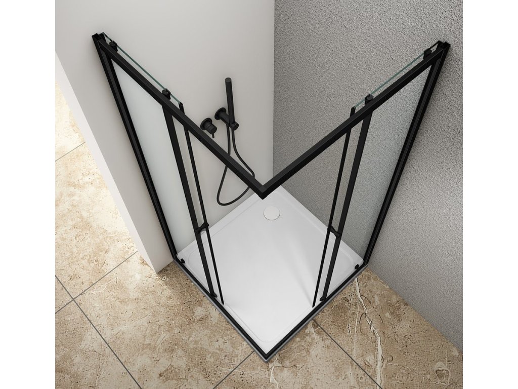 AGGA BLACK čtvercová sprchová zástěna 800x800mm, čiré sklo