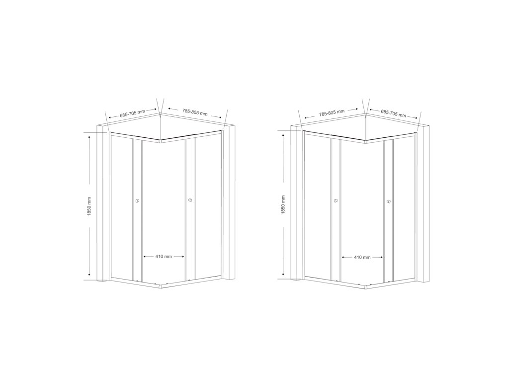 AGGA obdélníková sprchová zástěna 800x700mm, čiré sklo