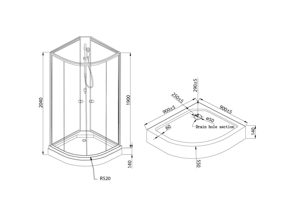 | Tvar | Čtvrtkruhové zástěny |