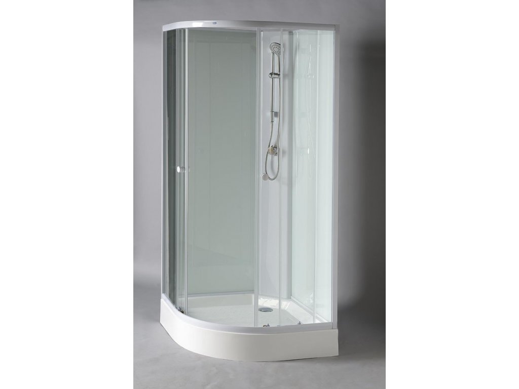 AIGO čtvrtkruhový sprchový box 900x900x2040 mm; bílý profil; čiré sklo