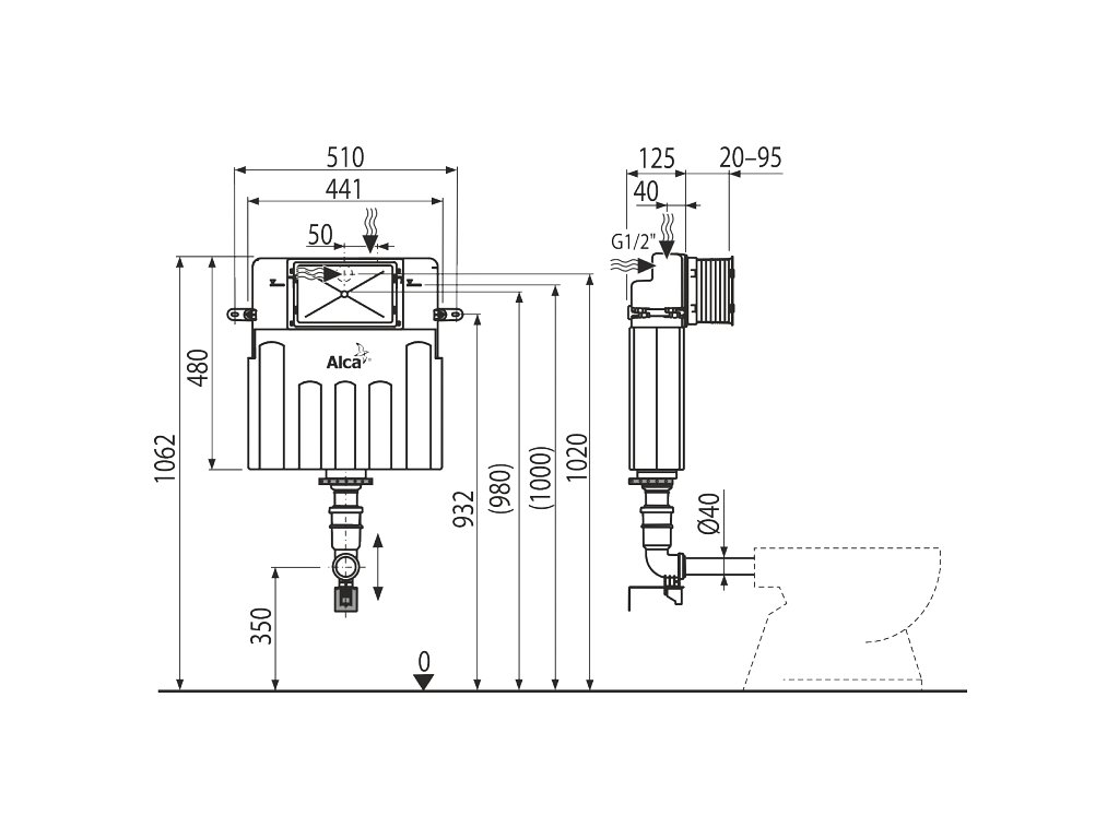 Alca Plast Basicmodul AM112Předstěnový instalační systém určený pro na podlaze stojící toalety a turecké záchody.