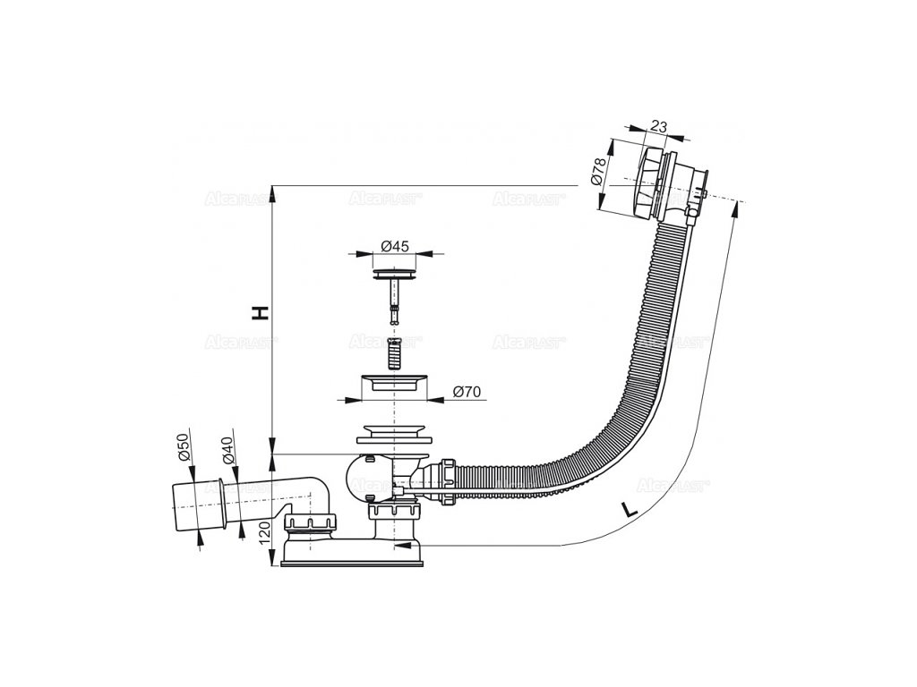Alcadrain sifon vanový automat komplet kov A51CR - malá zátka, přepad 57 cm (dříve Alcaplast)