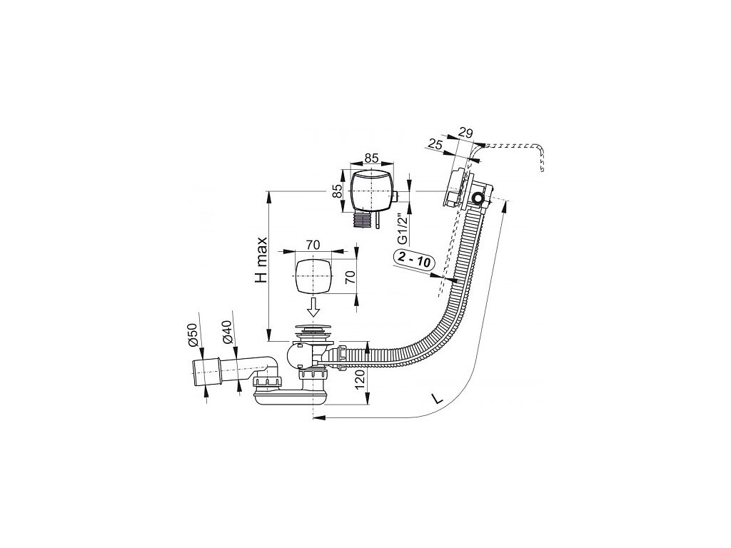 - 4 délkové varianty flexi hadice přepadu (60, 80, 100 a 120 cm)