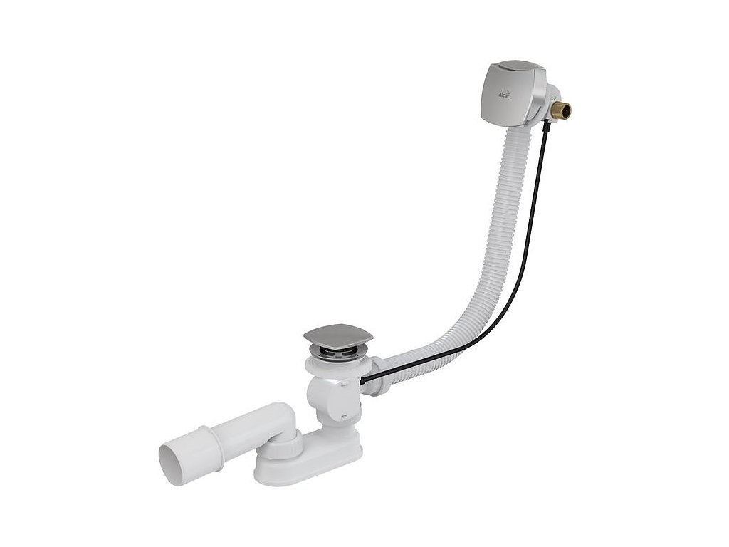 Alcadrain sifon vanový automat s napouštěním přepadem chrom A564CRM2-80 - hranatá zátka, délka přepadu 800 mm (dříve Alcaplast)