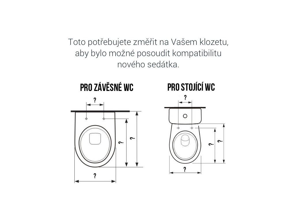 Pokud potřebujete zjistit kompatibilitu nového sedátka a Vašeho wc, je potřeba změřit následující rozměry stávajícího klozetu viz obrázek Jak správně změřit wc