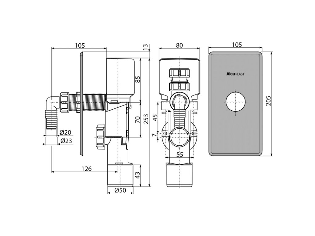 Alcadrain APS3P SIFON PRAČKOVÝ PODOMÍTKOVÝ S PŘIVZDUŠNĚNÍM, NEREZ DN40 A DN50 (dříve Alcaplast) obrázek č.: 1