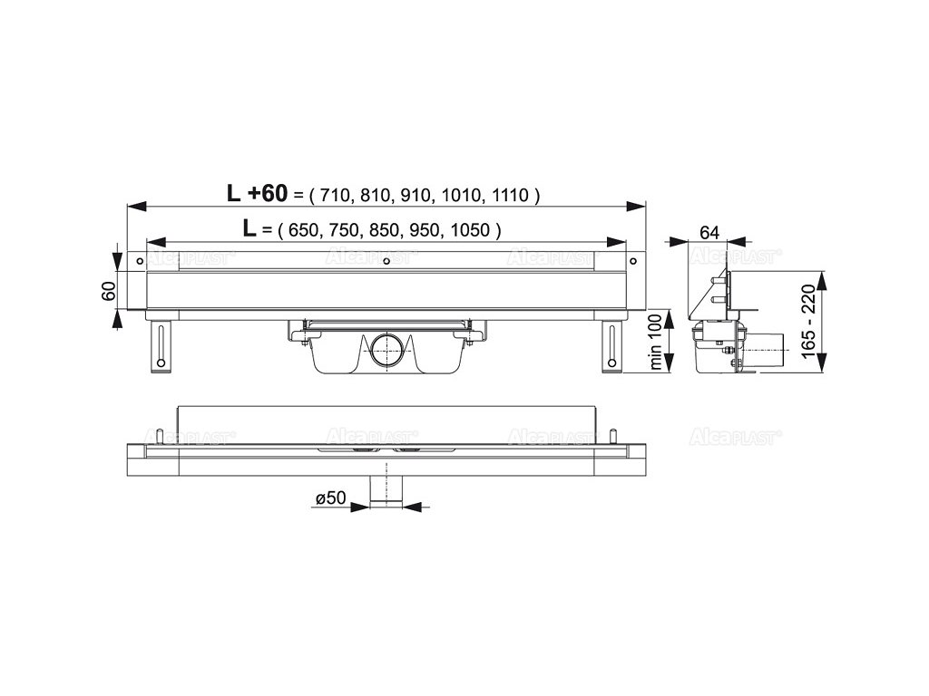 Popis a rozměry:- Žlab určený pro zabudování do stěny