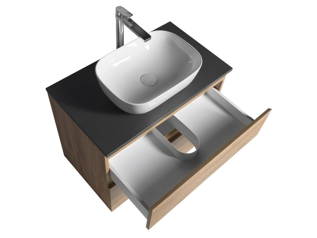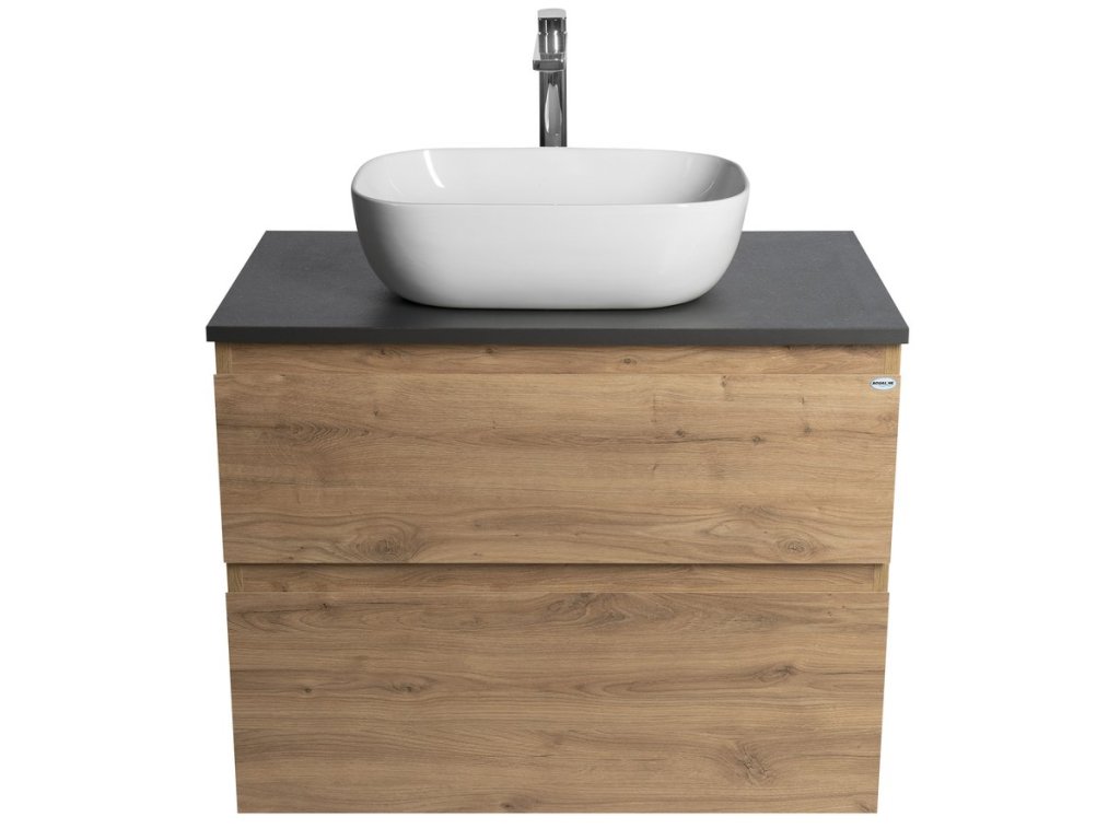 Koupelnový nábytek ALTAIR s deskou ALTAIR (HPL) v dekoru dub emporio a antracit břidlice platin lze kombinovat s umyvadly na postavení.