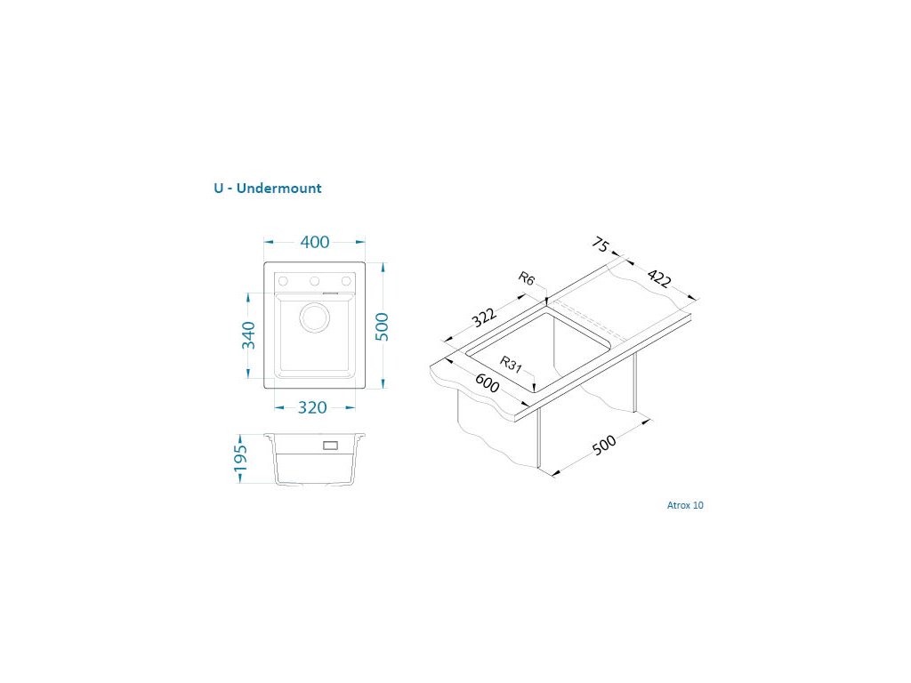 - Provedení : granitový dřez s odkapem