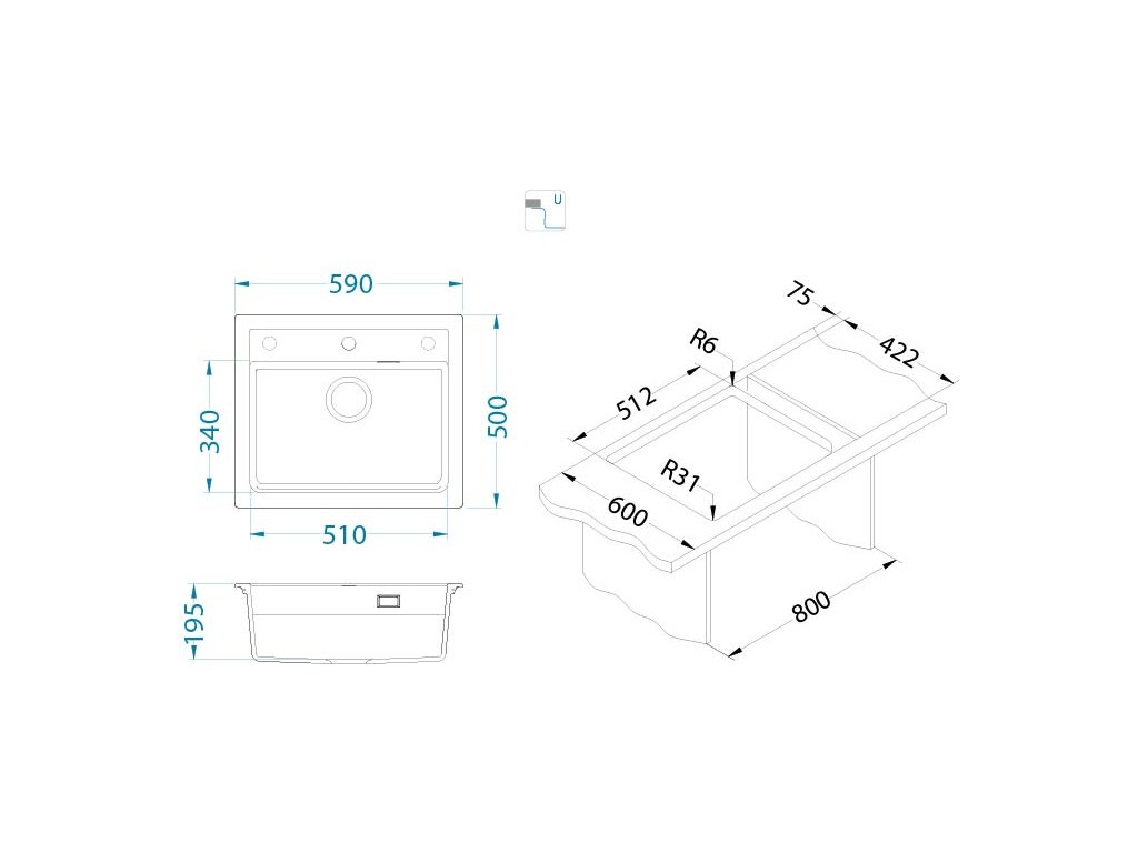 - Úchyty a těsnění pro upevnění dřezu v balení