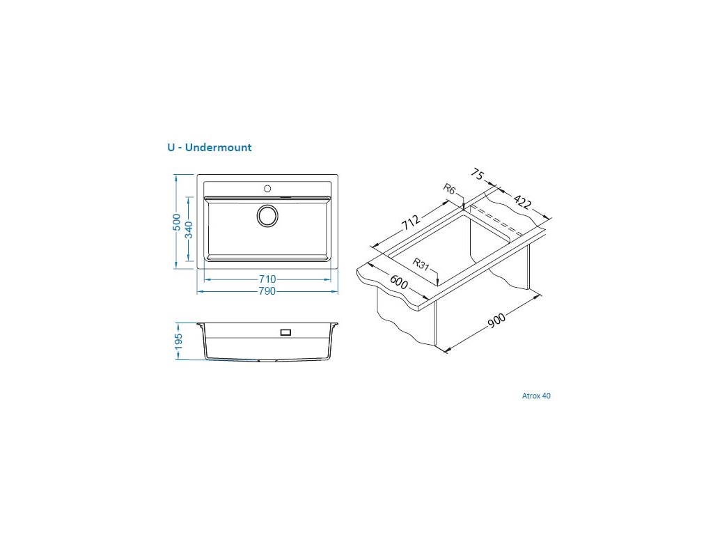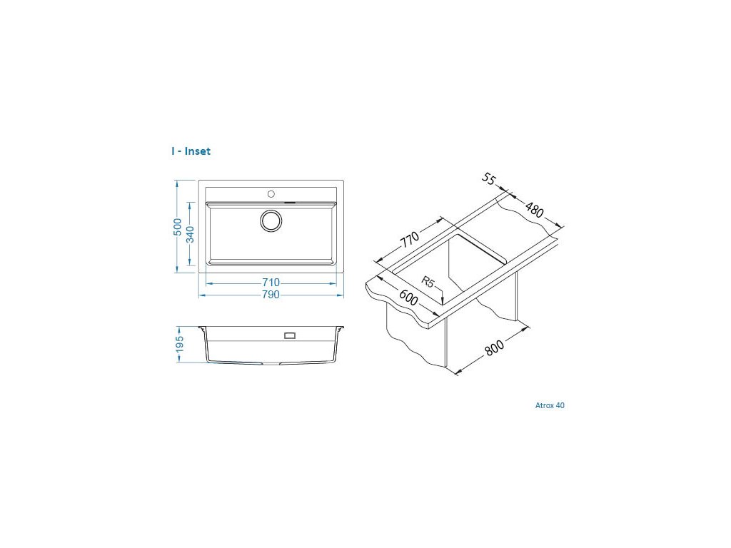 - Provedení : granitový dřez s odkapem