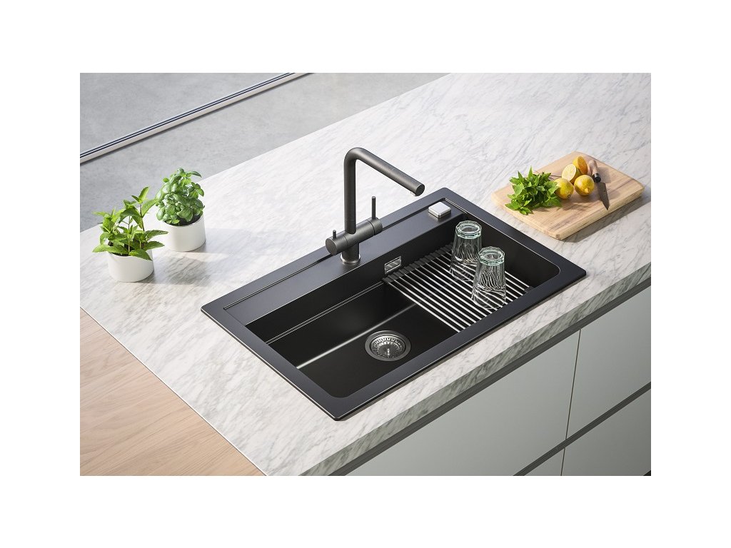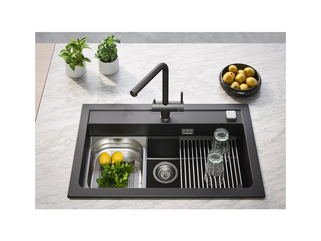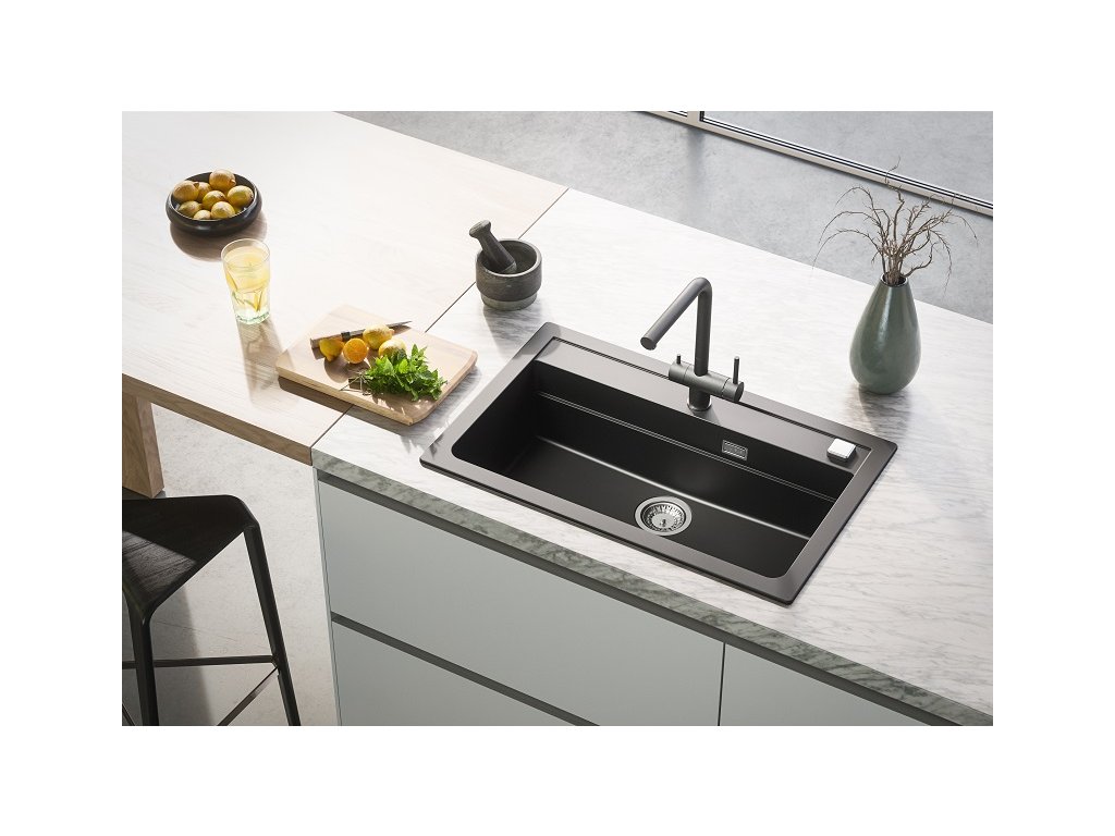 Alveus ATROX 40 černý 91 + pop up sifon, obdélníkový granitový dřez 790x500x200 mm Černý