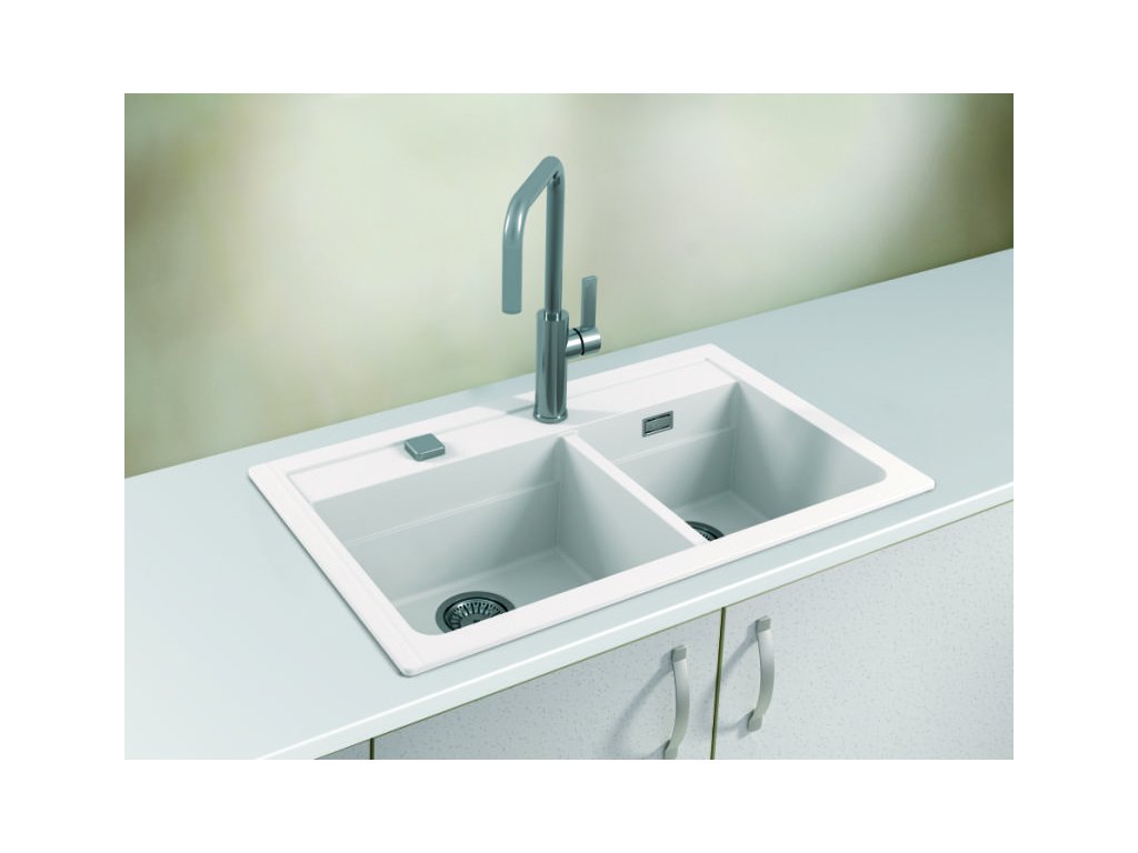Alveus ATROX 50 bílý 11 + pop up sifon, granitový dvoudřez 790x500x200 mm Bílý