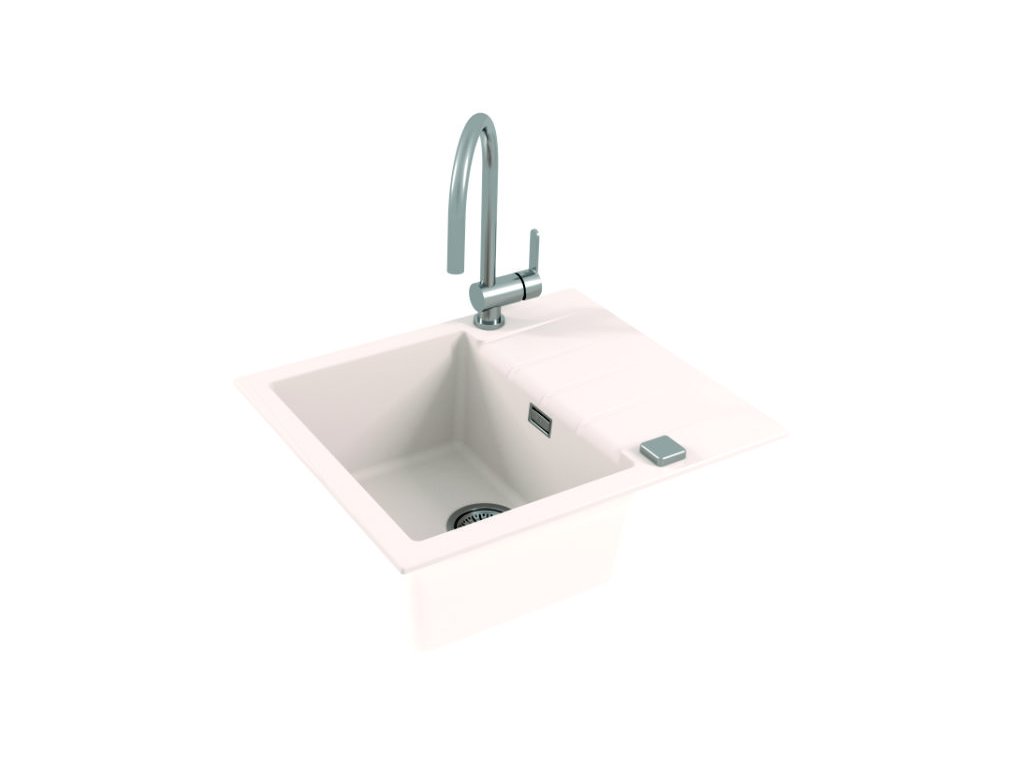Alveus CADIT 10 bílý 11 + pop up sifon, obdélníkový granitový dřez 590x500x200 mm s odkládací plochou Bílý