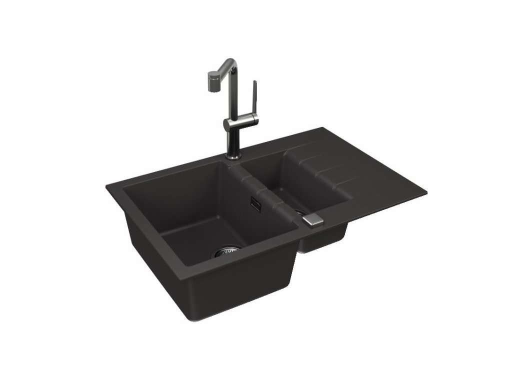 Alveus CADIT 70 černý 91 + pop up sifon, obdélníkový granitový dřez 790x500x200 mm s vaničkou a odkládací plochou Černý