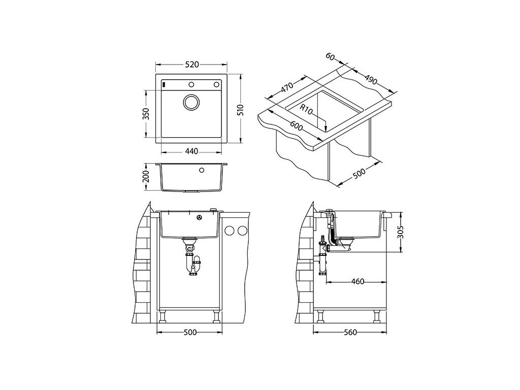 - Úchyty a těsnění pro upevnění dřezu v balení
