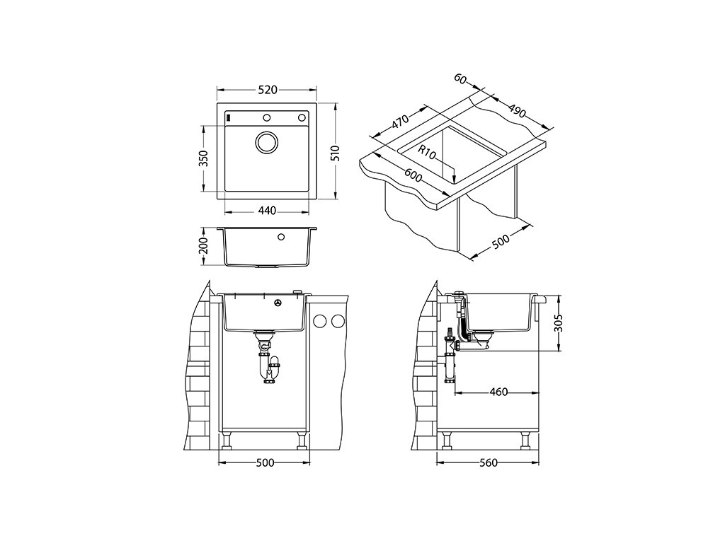 - Typy instalace: Vestavěné dřezy (I) / Dřezy se spodní montáží (U)