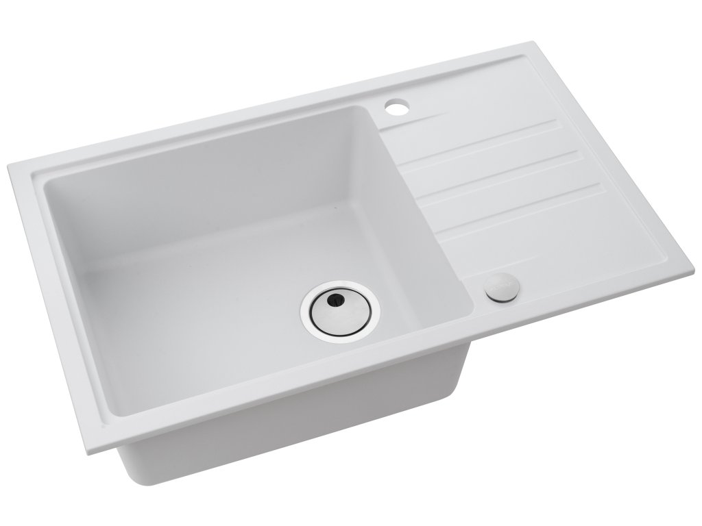 Alveus INTERMEZZO 130/11 bílý + jednoduchý sifon - obdélníkový granitový dřez 780x480x200 mm s odkládací plochou Bílý