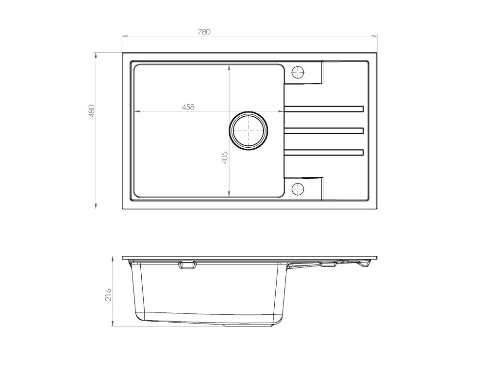 - Úchyty a těsnění pro upevnění dřezu v balení