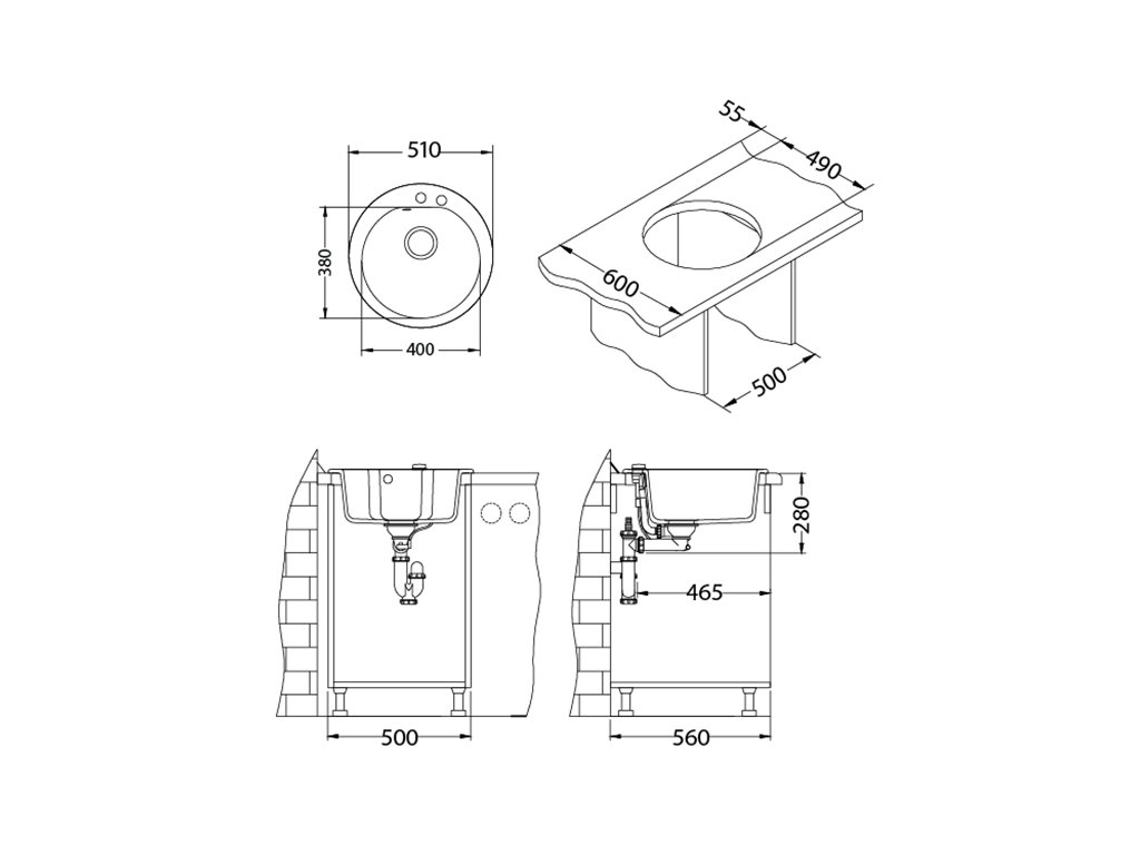 Alveus NIAGARA 10/ G 91 černá ( Ø 51) + pop -up sifon, kruhový dřez 510 mm Černá
