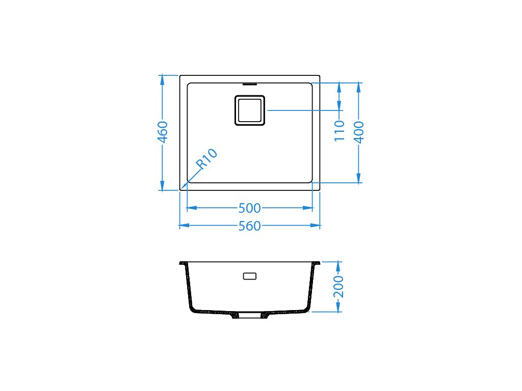 Alveus QUADRIX 50 / 05 Twilight + pop up sifon, obdélníkový granitový dřez 560x460x200 mm Twilight