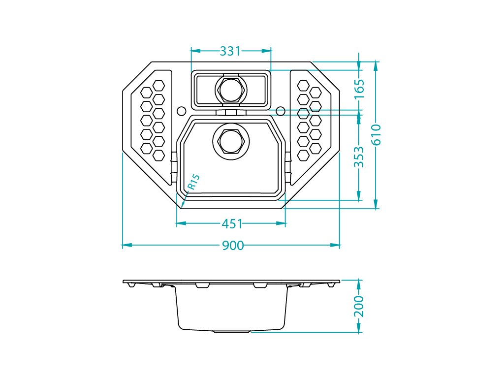 - Úchyty a těsnění pro upevnění dřezu v balení