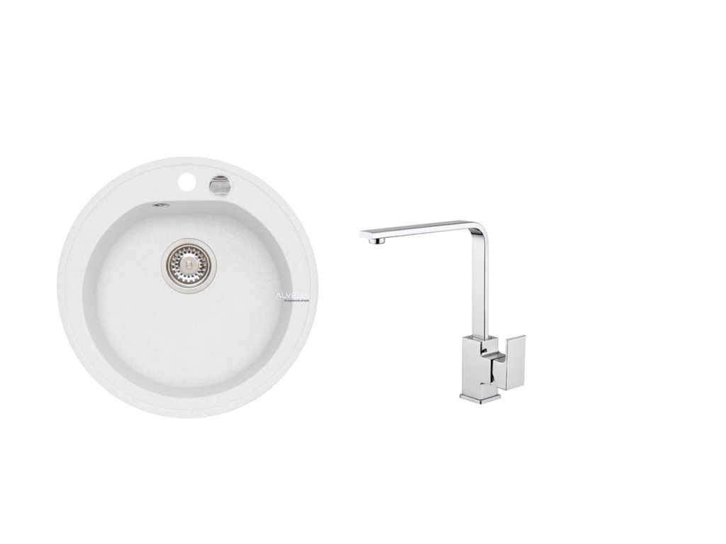 Alveus SET ALVEUS NIAGARA 10- 11+ BATERIE RENO CHR - kruhový bílý granitový dřez 510x175 mm v setu s baterií