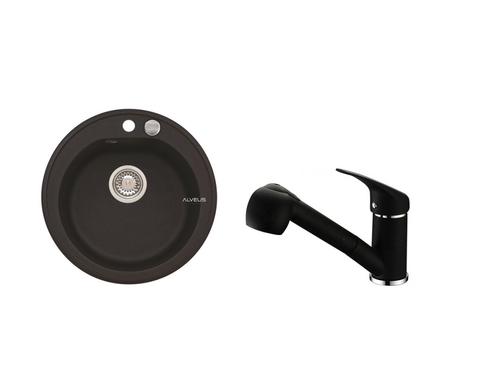 Alveus SET ALVEUS NIAGARA 10- 91+ BATERIE AM 20/91 - kruhový černý granitový dřez 510x175 mm v setu s baterií