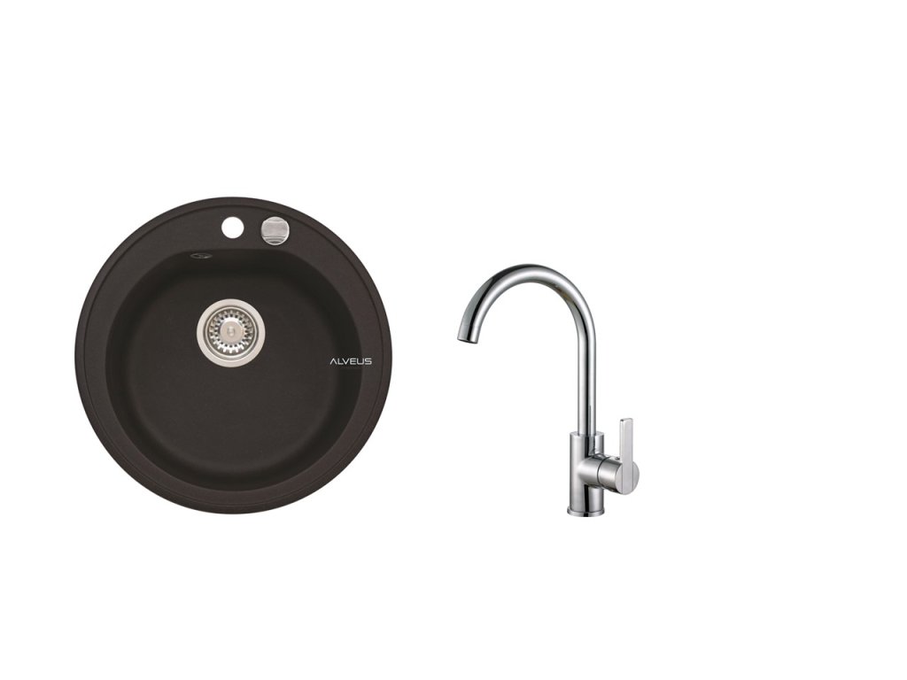 Alveus SET ALVEUS NIAGARA 10- 91+ BATERIE TONIA CHR - kruhový černý granitový dřez 510x175 mm v setu s baterií