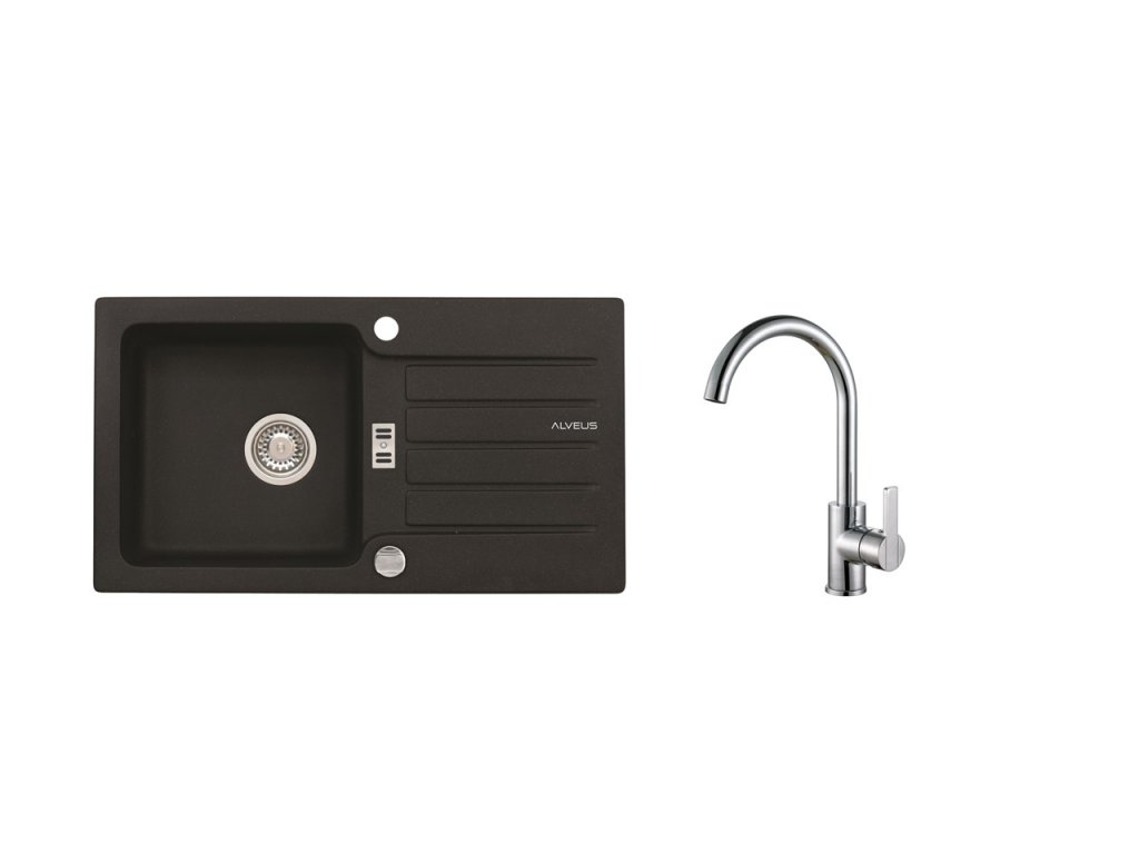 Alveus SET ALVEUS NIAGARA 30/91 + BATERIE TONIA CHR - granitový černý dřez 775 x 430 mm v setu s baterií