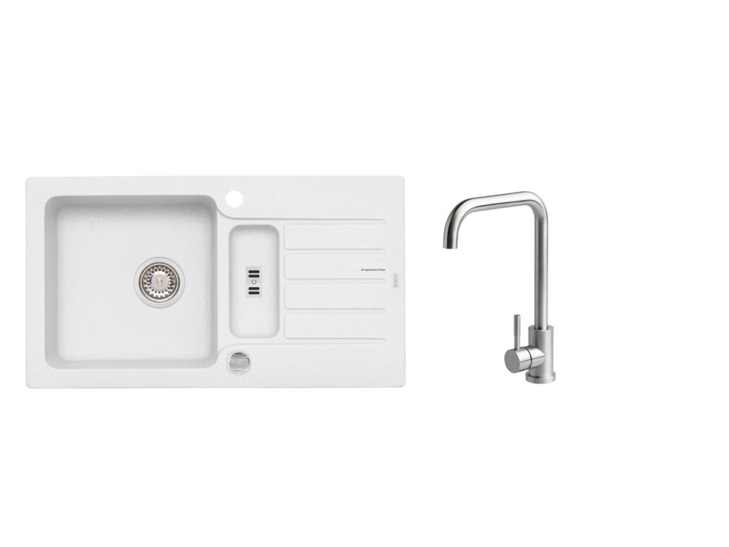 Alveus SET ALVEUS NIAGARA 70- 11+ BATERIE ANGEL CHR - granitový bílý dřez 780 x 435 mm v setu s baterií
