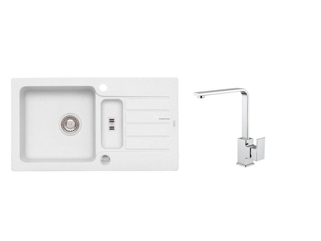 Alveus SET ALVEUS NIAGARA 70- 11+ BATERIE RENO CHR - granitový bílý dřez 780 x 435 mm v setu s baterií