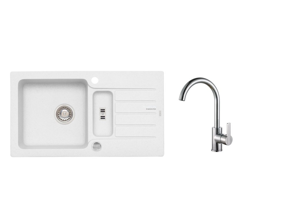 Alveus SET ALVEUS NIAGARA 70- 11+ BATERIE TONIA CHR - granitový bílý dřez 780 x 435 mm v setu s baterií