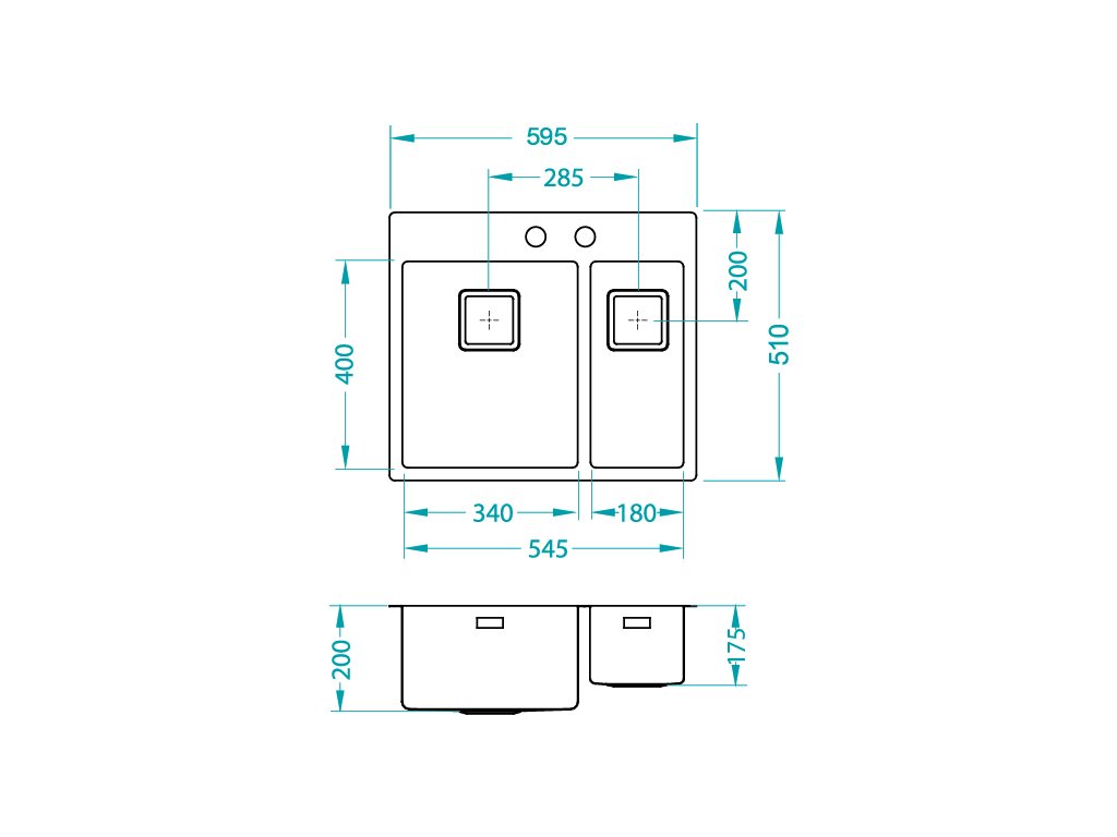 - Velikost misky (mm): 340×400×200 / 180×400×175
