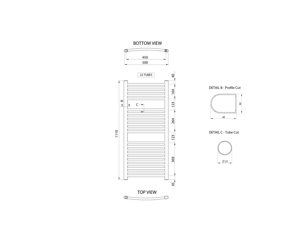 ALYA otopné těleso oblé 500x1110mm; chrom