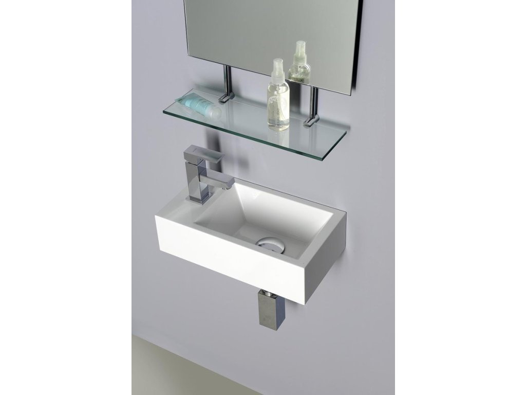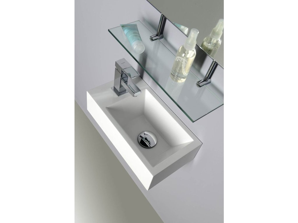 AMAROK umývátko, litý mramor, 40x22cm, baterie vlevo, bílá