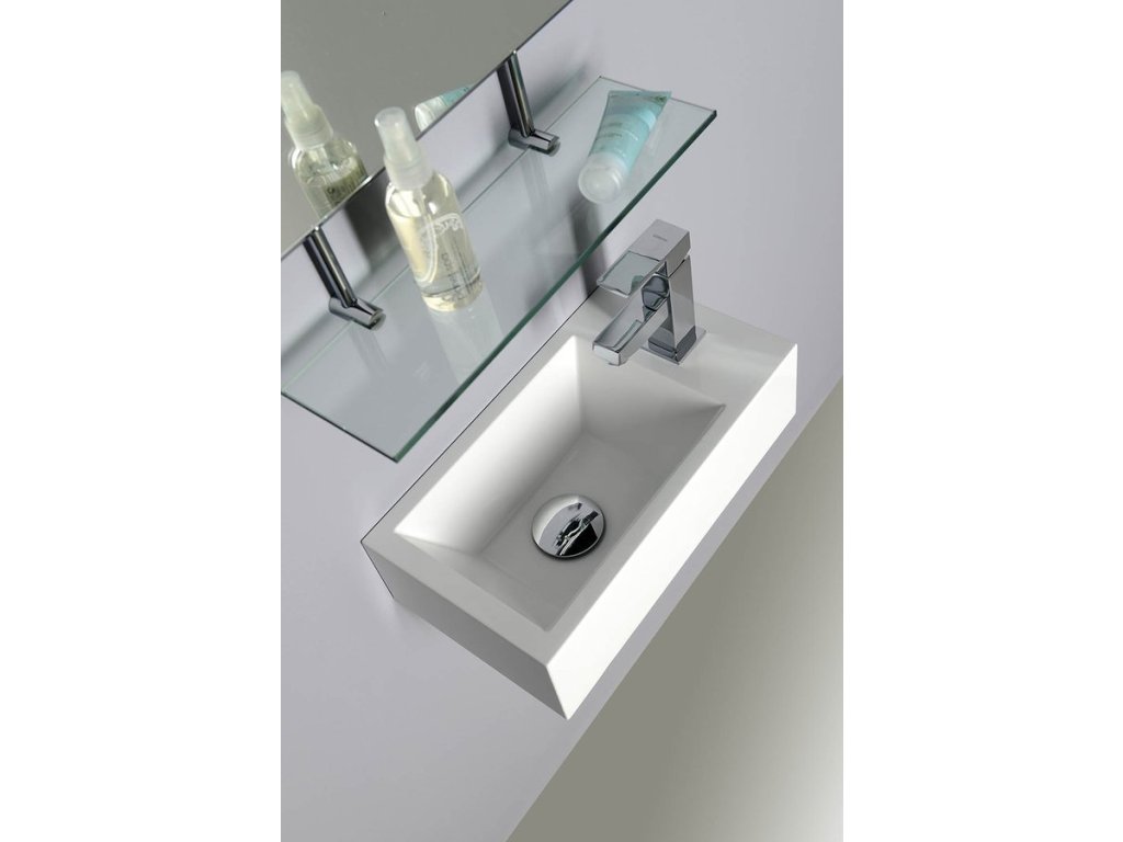 AMAROK umývátko, litý mramor, 40x22cm, baterie vpravo, bílá