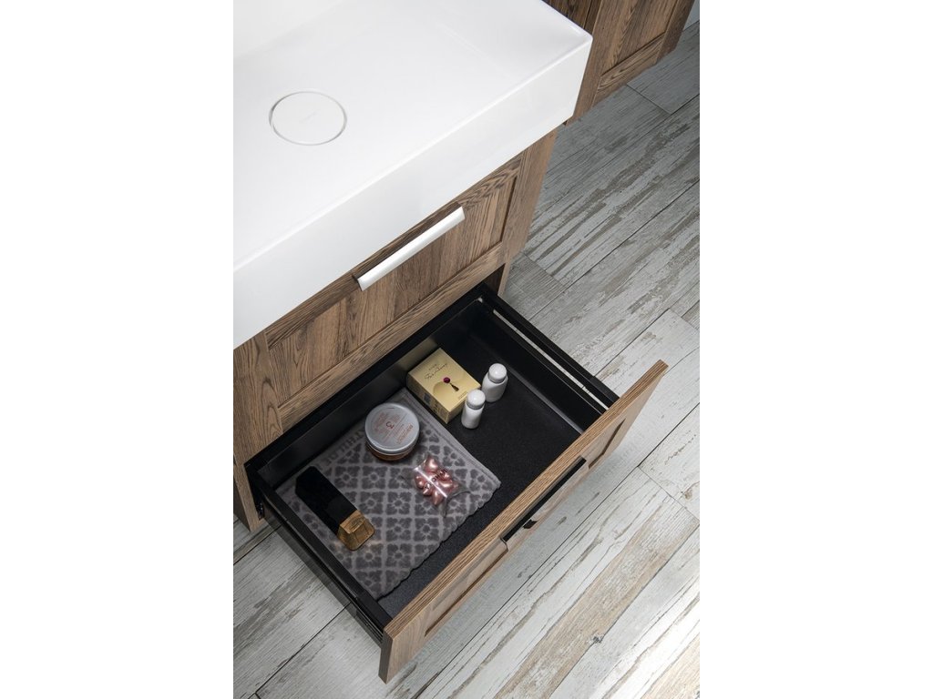 Nábytek je vybaven pojezdy zásuvek s pomalým dojezdem a systémem automatického dovření zásuvek. Již žádné hlučné dovírání.