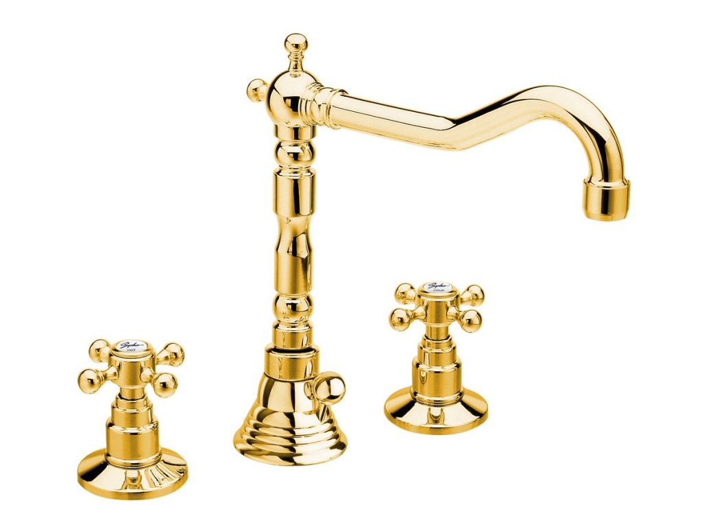 ANTEA tříprvková umyvadlová baterie s retro hubicí, s výpustí, zlato