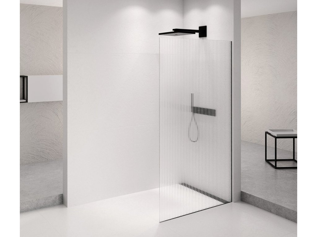ARCHITEX BLACK MATT sprchová zástěna 862mm, sklo Flute