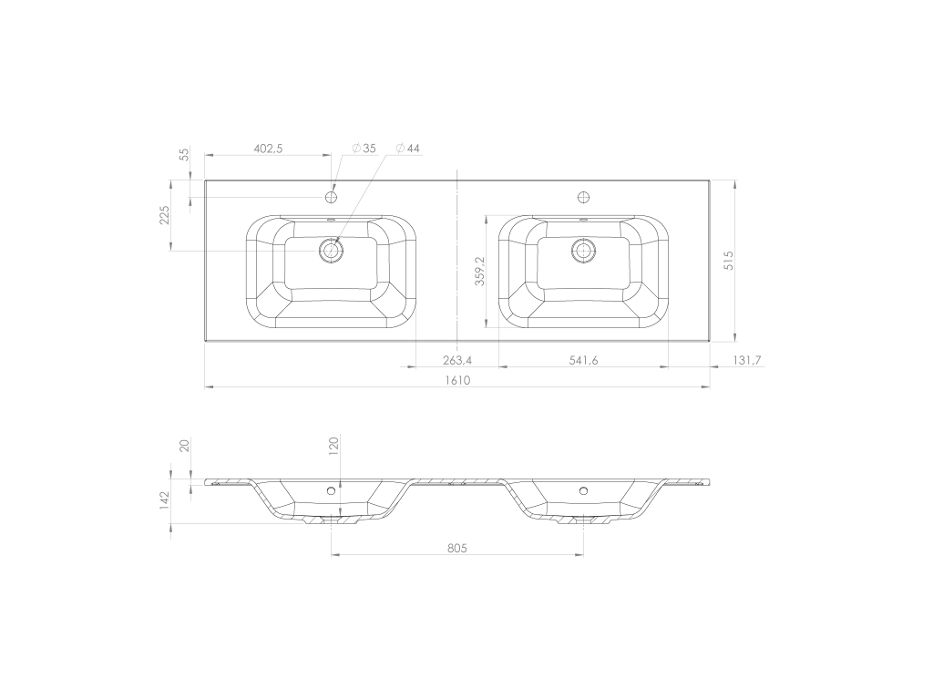 ARECA dvojumyvadlo, litý mramor, 161x51,5cm, bílá
