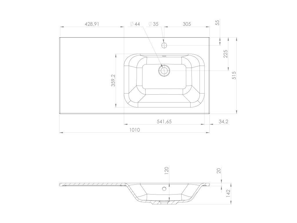 ARECA umyvadlo; litý mramor; 101x51;5cm; pravé; bílá