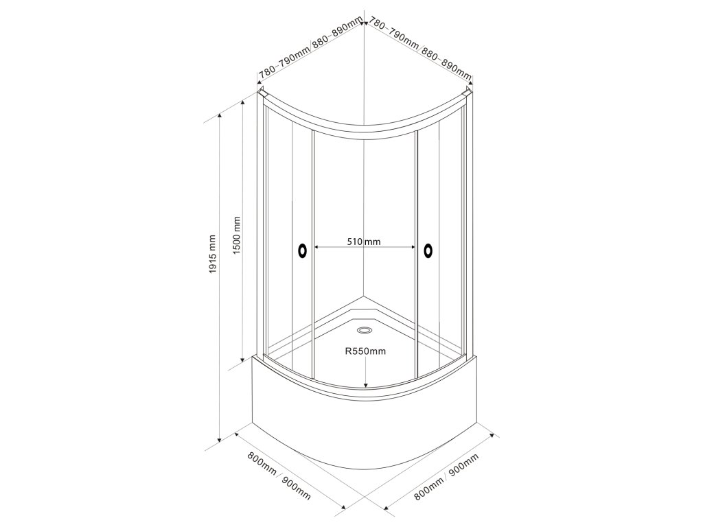 ARLEN čtvrtkruhová sprchová zástěna 800x800x1500 mm; sklo Brick