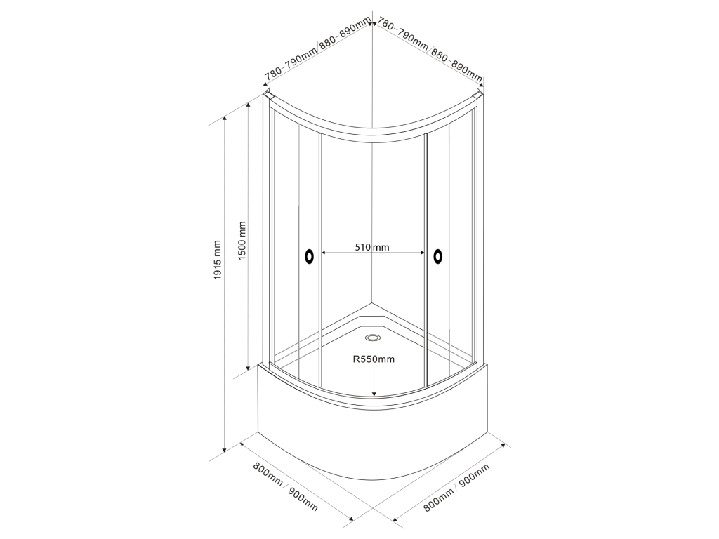 ARLEN čtvrtkruhová sprchová zástěna 800x800x1500 mm, sklo Brick