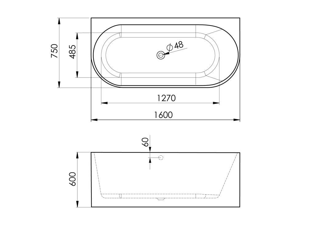ASTRA DR MONOLITH nástěnná stojící vana 160x75x60cm; bílá/černá