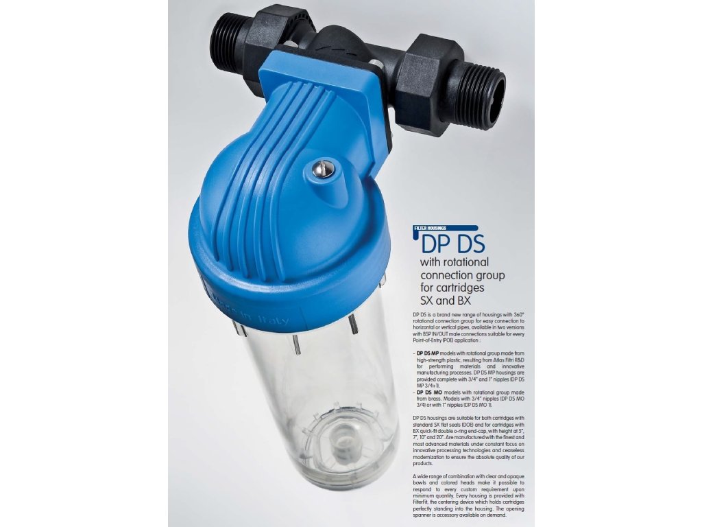 Filtr Atlas Senior 10" DP DS 3/4" a 1"Filtrační nádoba Atlas Senior DP DS s otočnou hlavou, s průhlednou nádobou a připojovacím rozměrem 3/4" a 1". Filtr je určen pro větší rodinné domy.