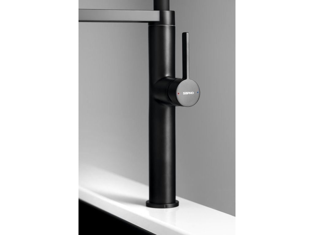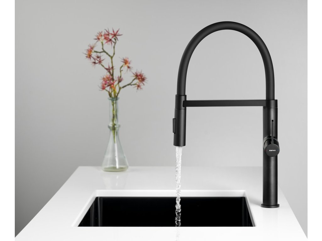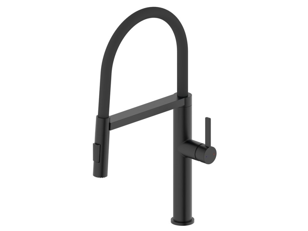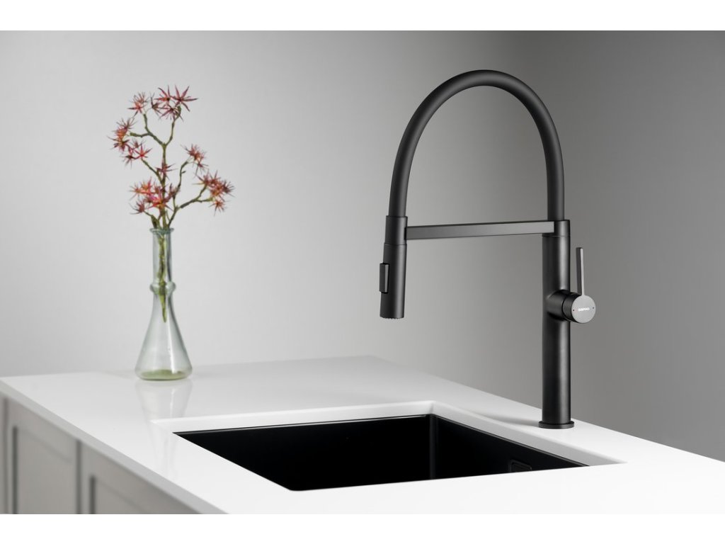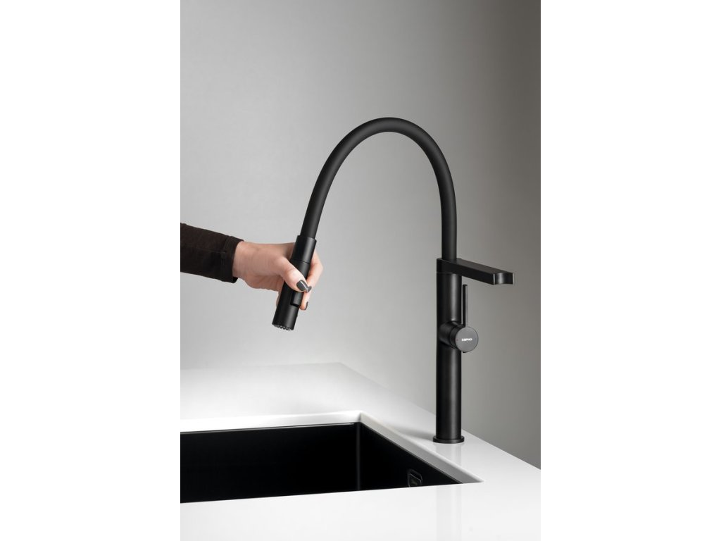 ATON stojánková dřezová baterie se sprškou, černá mat