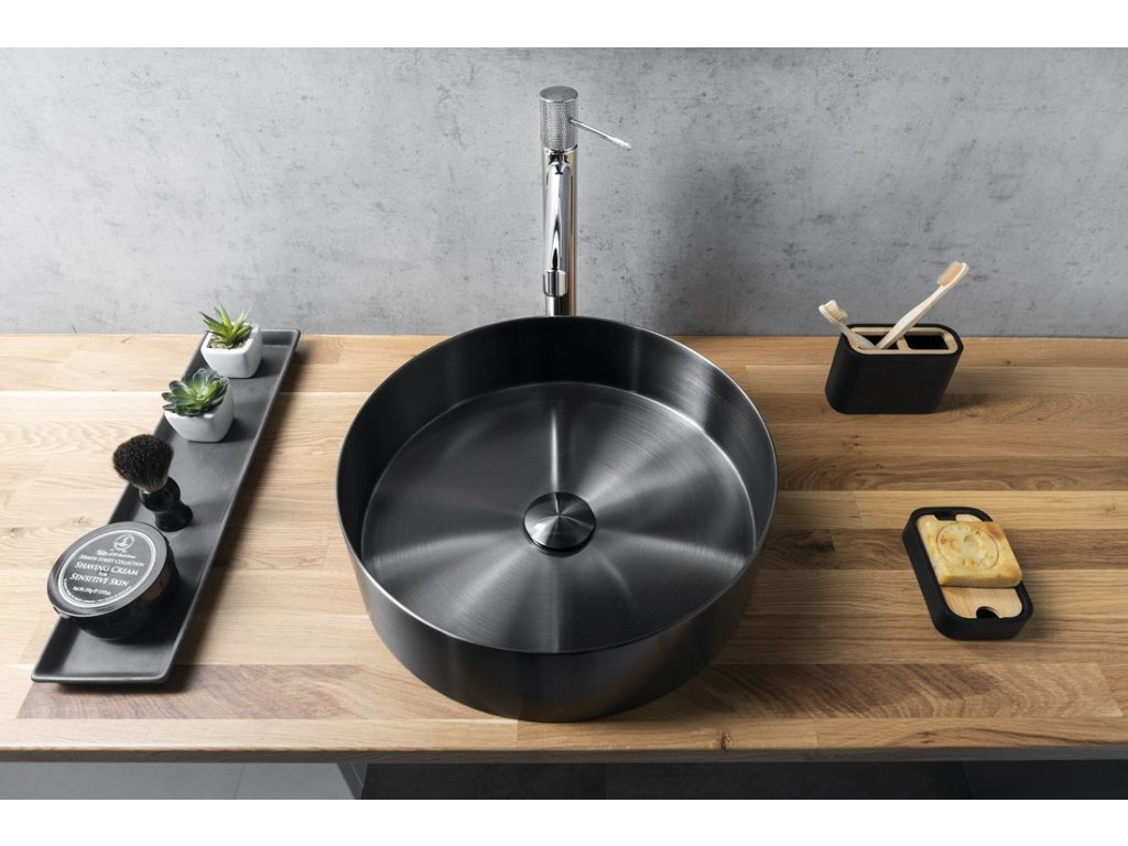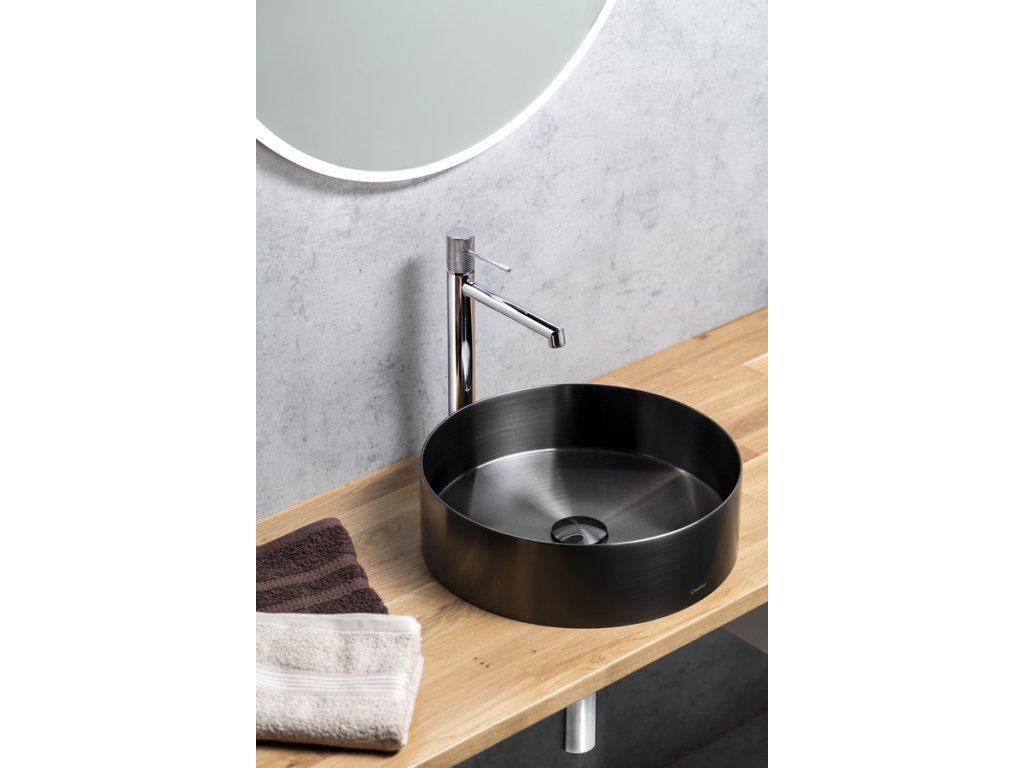 AURUM nerezové umyvadlo na desku, průměr 38cm, včetně výpusti, gun metal