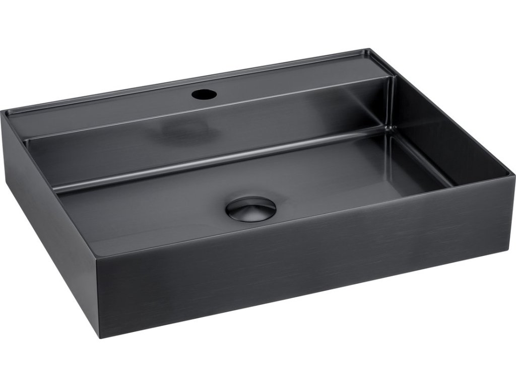 AURUM nerezové nástěnné umyvadlo, 55x42cm, včetně výpusti, gun metal