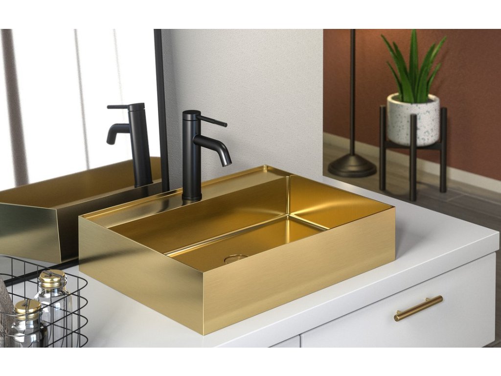 AURUM nerezové nástěnné umyvadlo, 55x42cm, včetně výpusti, zlato mat